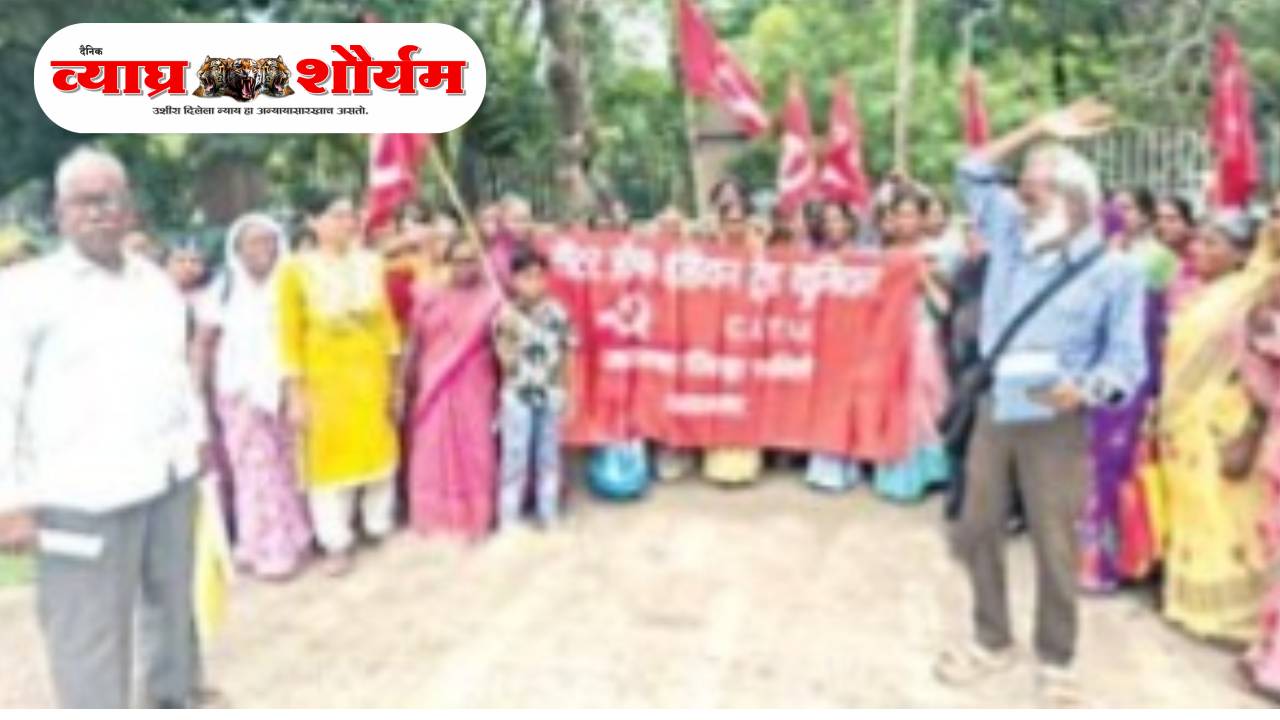 जळगाव – गेल्या आठवड्यात जळगाव जिल्ह्यात झालेल्या अतिवृष्टीमुळे झालेल्या नुकसानीची भरपाई राज्य सरकारने त्वरित द्यावी, या मागणीसाठी मार्क्सवादी कम्युनिस्ट पक्ष (माकप) जळगाव जिल्हा समितीच्या वतीने मंगळवारी ३० सप्टेंबर रोजी दुपारी १ वाजता जिल्हाधिकारी कार्यालयासमोर जोरदार धरणे आंदोलन करण्यात आले. यावेळी शेतकरी, शेतमजूर, घरकामगार आणि बांधकाम कामगार यांनी आंदोलनात सहभाग घेतला.