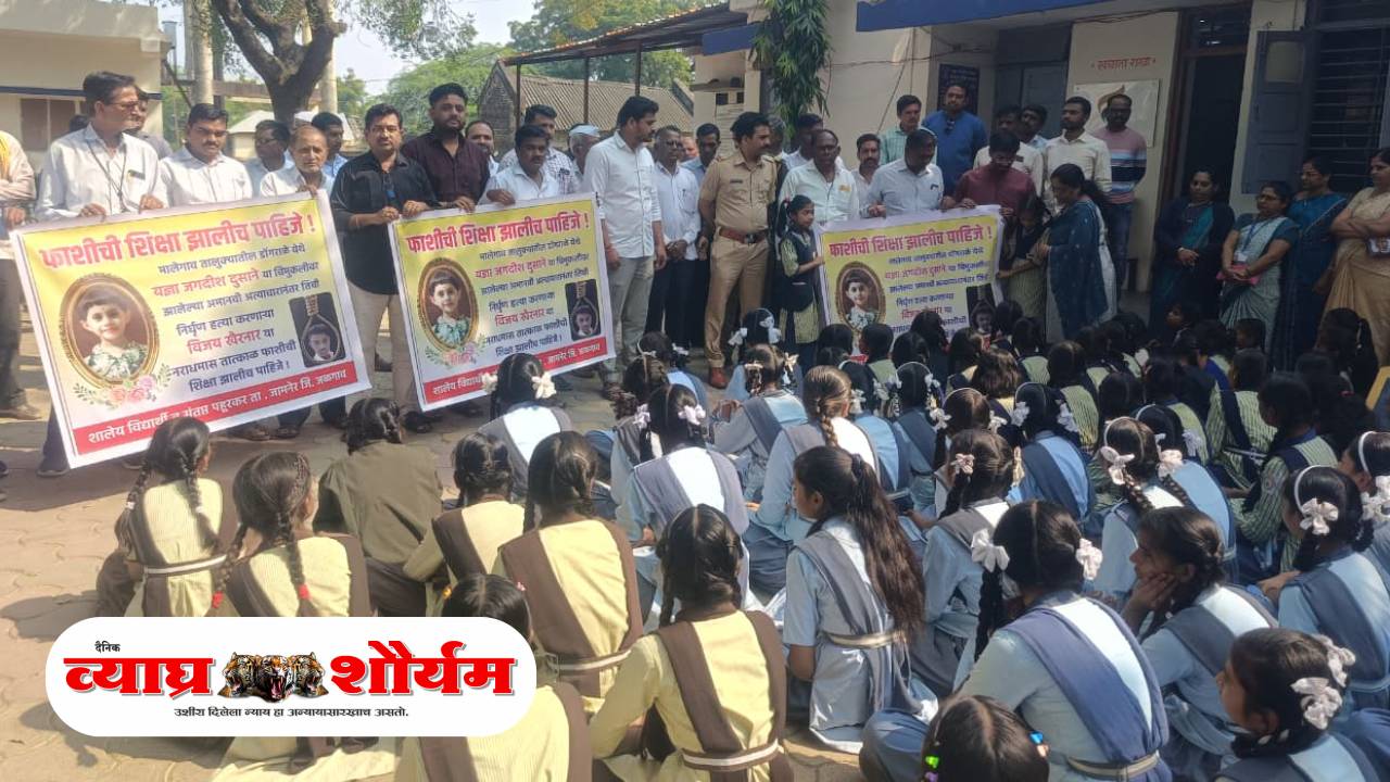 पहूर (ता. जामनेर) – मालेगाव तालुक्यातील डोंगराळे येथे चिमुकली यज्ञा जगदीश दुसाने हिच्यावर झालेल्या अमानुष अत्याचारानंतर तिची निर्घृण हत्या करणाऱ्या नराधम विजय संजय खैरनार याला तात्काळ फाशीची शिक्षा देण्यात यावी, या एकमुखी मागणीसाठी आज, दि. 21 नोव्हेंबर 2025 रोजी पहूरमध्ये शालेय विद्यार्थ्यांनी संतप्त आवाज उठवला. मूक मोर्चाच्या माध्यमातून विद्यार्थ्यांनी यज्ञाच्या आत्म्यास न्याय मिळवण्यासाठी ठाम भूमिका घेतली.